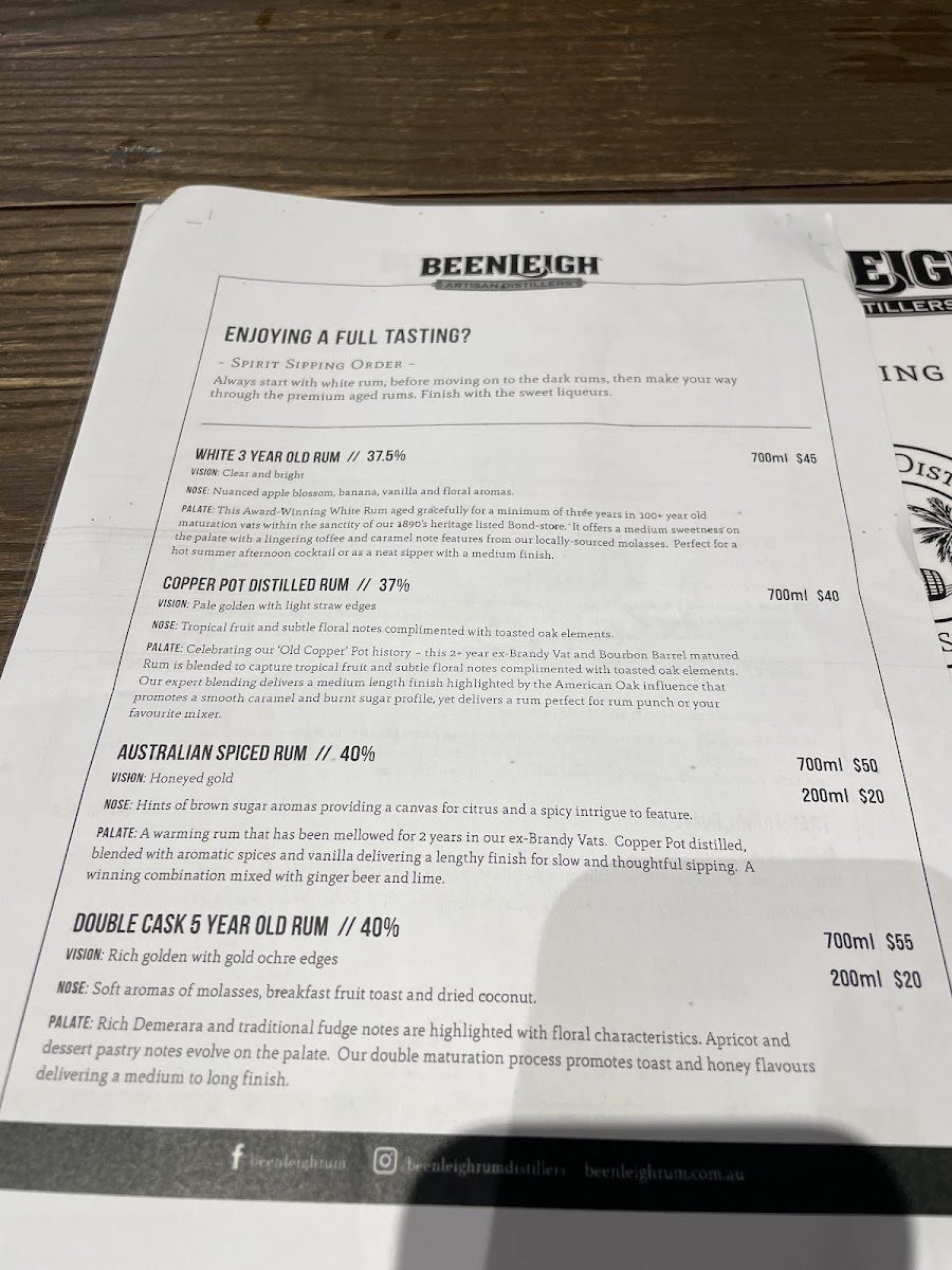 The menu at Beenleigh Artisan Distillery offers a delightful range of dishes, perfect for sharing or enjoying as a main. For those looking to share, options like Signature Chips, Signature Onion Rings, Chicken Wings, Spicy Corn Ribs, and Sticky Pork Belly Bites provide a savory start to any meal. Their burger selection is mouthwatering, with choices such as the Bosun Bills Cheeseburger, SS Walrus Burger, Garden Burger, and the crispy Southside Fried Chicken Burger. For taco lovers, there are various options, including the Fish Taco (2), Beef Taco (2), Cauliflower Taco (2), and Chicken Taco (2). The pizza offerings cater to different tastes, with choices like Cheesy Garlic Parmesan, Beenleigh Margarita, Pumpkin Pesto, Chipotle Chicken, and the tropical Smoked Ham & Rum Pineapple. The mains are hearty and satisfying, with the classic Caesar Salad, comforting Brown Butter Pumpkin Gnocchi, flavorful Dukkha Chicken Breast, crispy Fish and Chips, and tender Southside Squid. The kids' menu offers favorites like a Cheeseburger, Chicken Nuggets, Fish and Chips, and a sweet Ice Cream Sundae. Whether you're after something light or filling, Beenleigh Artisan Distillery provides a diverse selection sure to satisfy every palate.